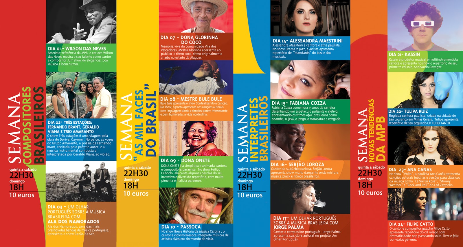As atuações mantêm o mesmo calendário – de quinta a domingo, às 22H30 (exceto ao domingo, quando os concertos são às 18H). No total são mais 17 bandas brasileiras vencedoras do “edital” do Ano do Brasil em Portugal lançado pela Funarte – Fundação Nacional de Artes, no Brasil, que se distribuem pelas cinco semanas temáticas do mês de março, juntamente com duas referências musicais portuguesas.